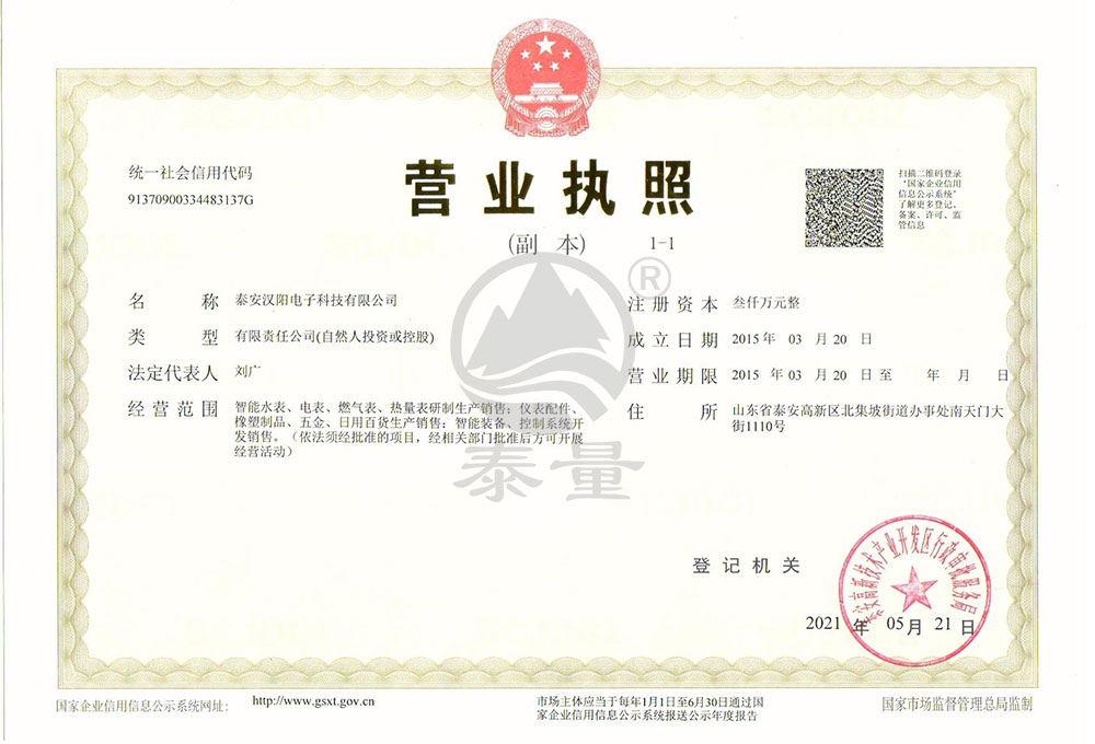 “泰量”水電表為泰安漢陽電子科..